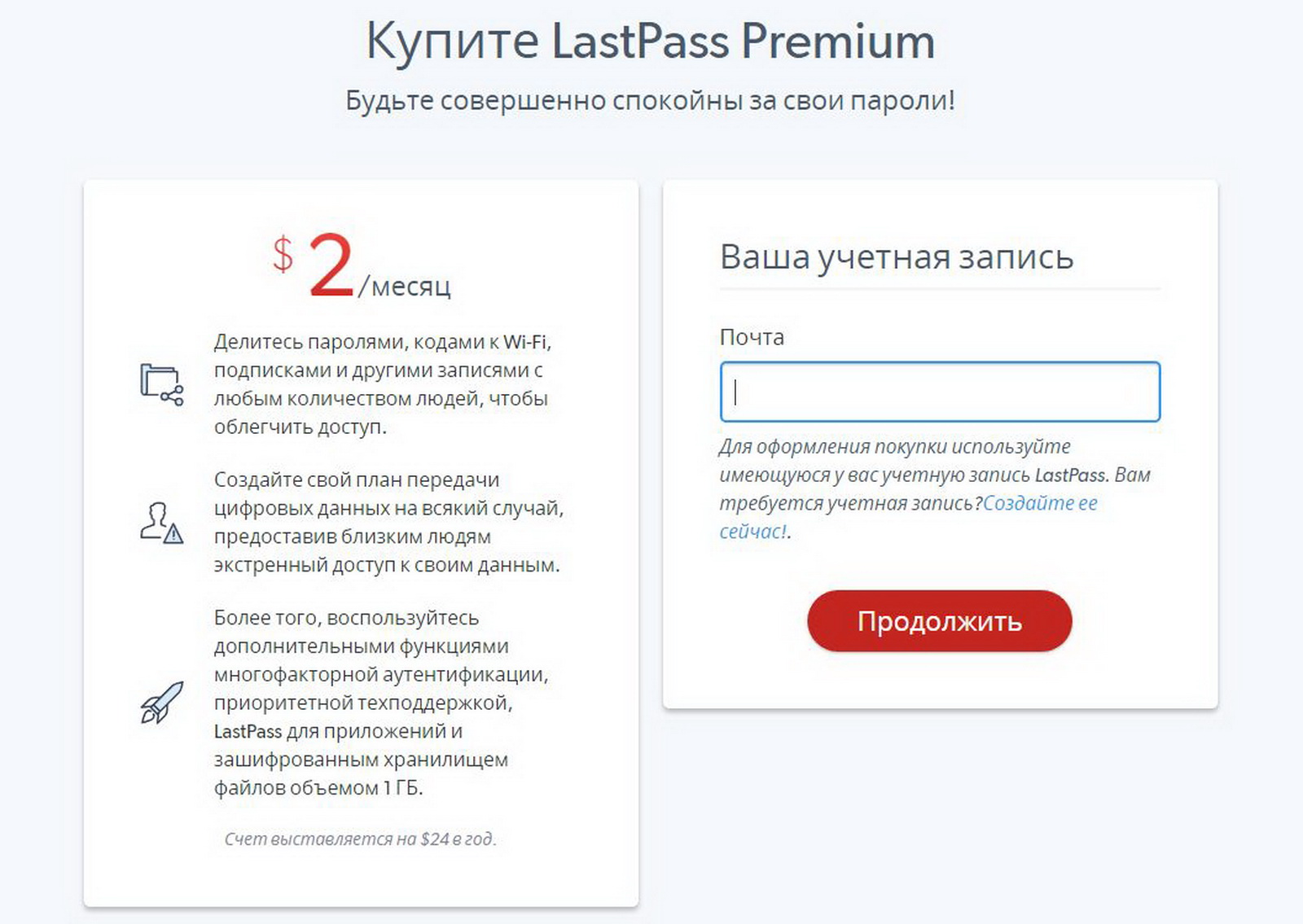 Приложение хорошо тем, что в бесплатной версии обеспечивает практически всю необходимую функциональность. То есть хранение паролей, синхронизация с другими устройствами, шифрование — все это есть по умолчанию. Подписка за 24 доллара в год добавляет возможность делиться паролями с семьей и хранилище данных объемом 1 гигабайт, что, в общем, не очень-то и нужно. Хотя фича, что в случае проблем некий набор паролей автоматически поступает в распоряжение родственников — это прикольно.