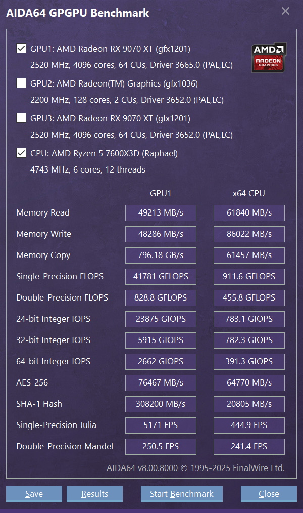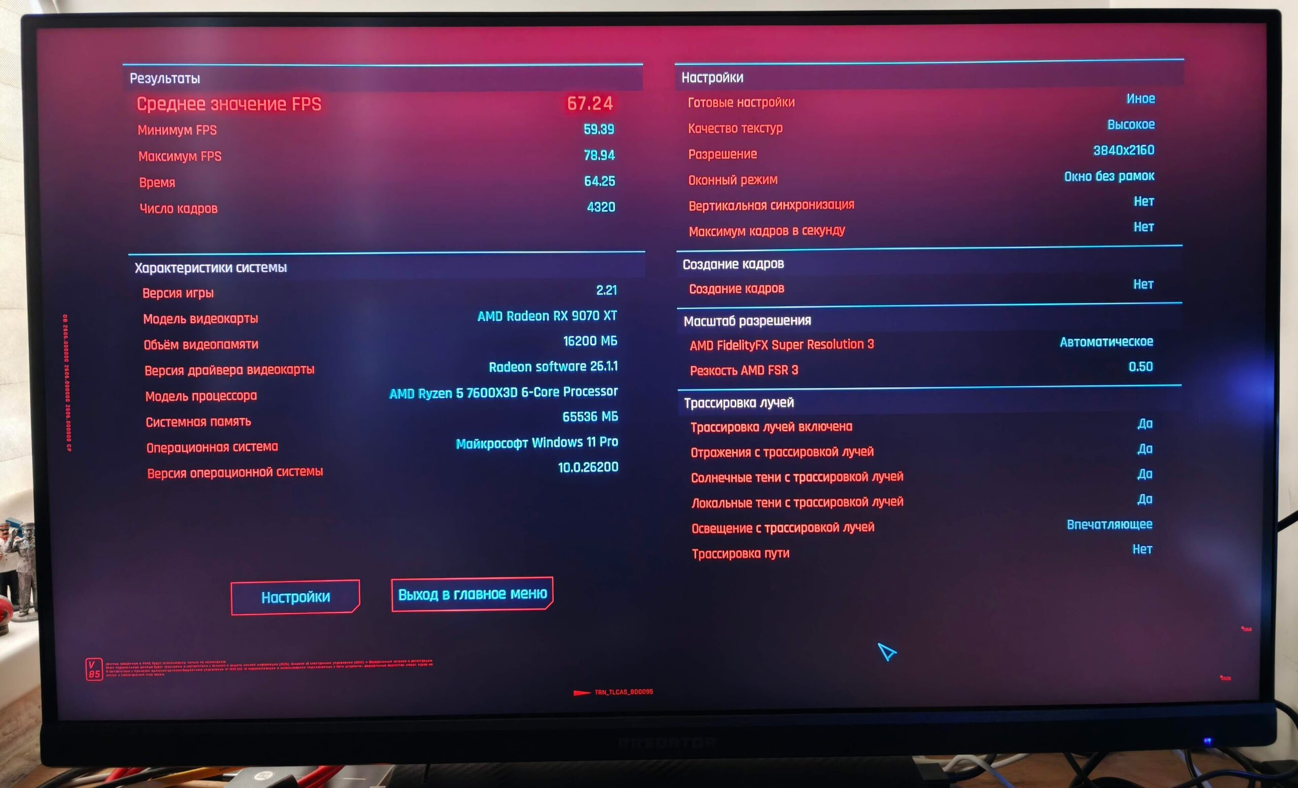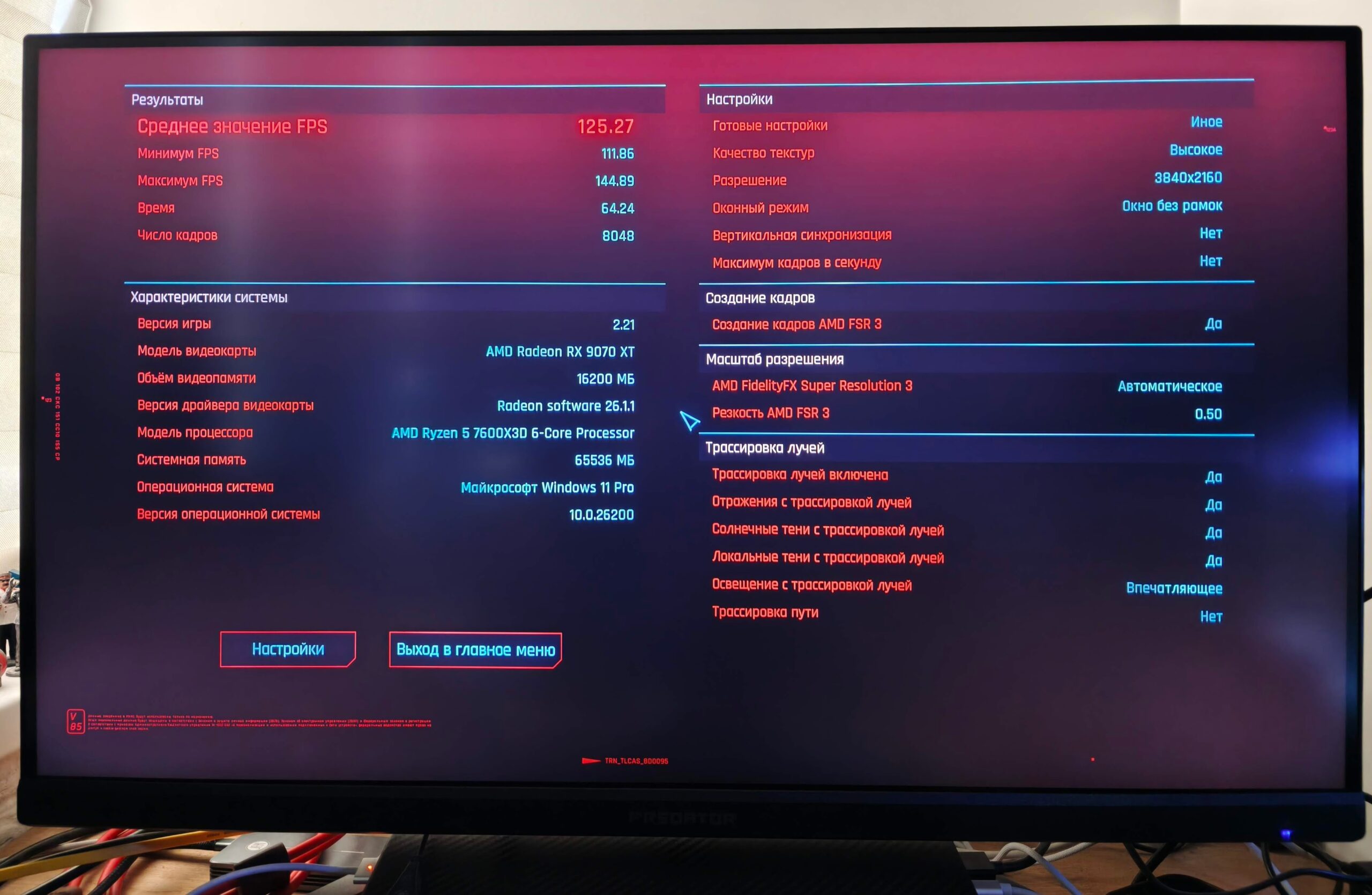 В связи с этим вопрос достаточности процессора для яростных игрищ в 4К снимается. Его совершенно достаточно. Может быть, даже и для 8К хватит. Об ускорителе Radeon RX 9070XT у меня недавно выходил большой материал, интересующимся рекомендую изучить. Там он трудился в связке с процессором AMD Ryzen 7 9700X, но, поверьте, разница с Ryzen 5 7600X3D по кадрам в секунду чисто косметическая. Просто 9700Х отдыхал еще больше.