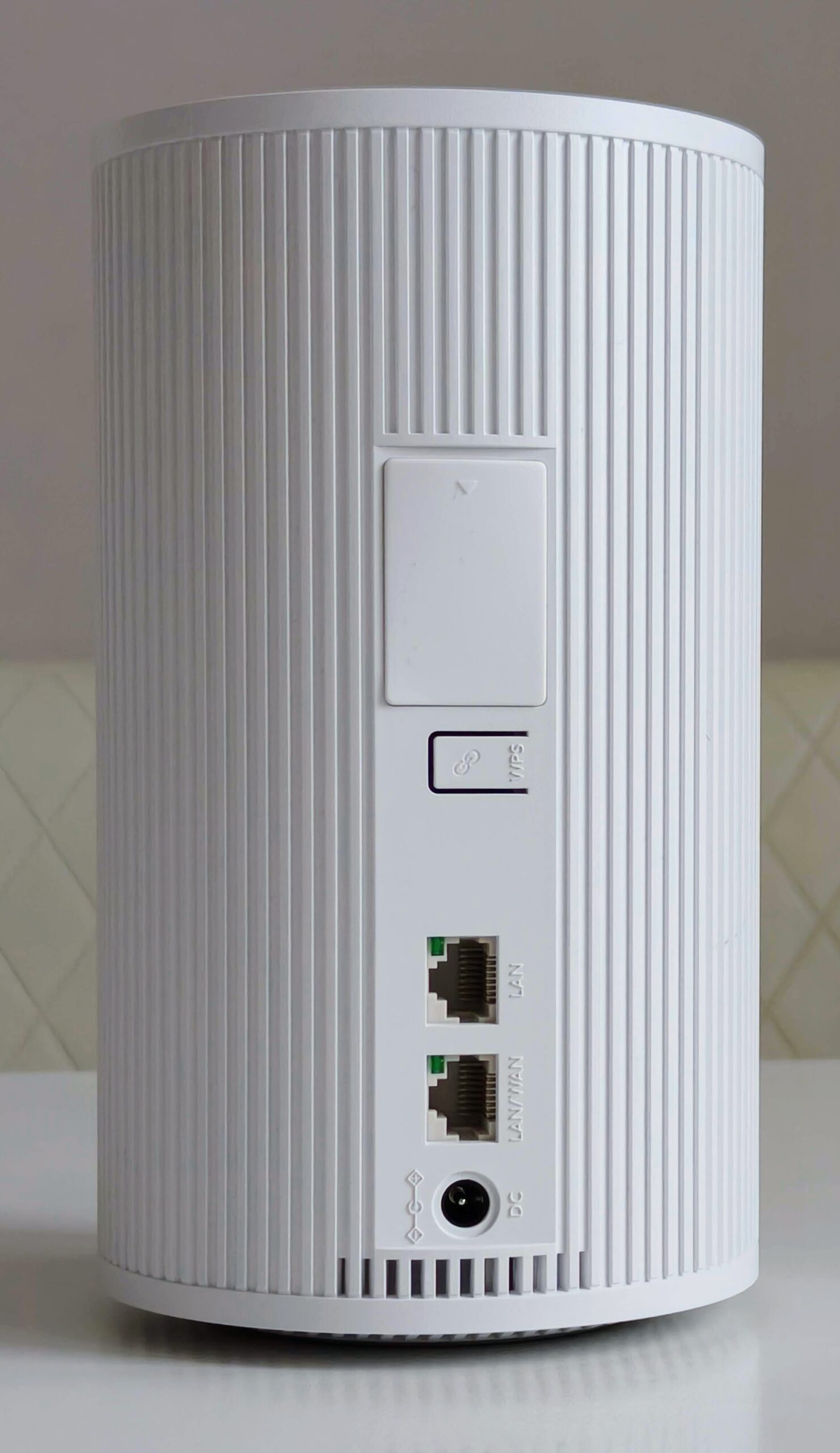 Этот роутер больше похож на модуль mesh-системы. Круглая башенка без внешних антенн, с парой гигабитных портов Ethernet. Тем не менее, это самый настоящий роутер. И если не будет хватать антенн, под резиновой заглушкой есть стандартные разъемы для пары дополнительных. Правда, предназначаются они только для модема, а за Wi-Fi отвечают пять внутренних, причем две из них обслуживают сразу два диапазона – 2.4 и 5 ГГц. То есть физически внутри три антенны.
