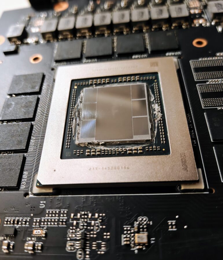 Использование монокристального чипа Navi 48, сделанного по технологии 5 нанометров, позволило упростить конструкцию ускорителя и уменьшить его габариты. Площадь самого чипа по сравнению с разными версиями Radeon RX 7900 уменьшилась почти в полтора раза. Понятно, что хорошей видеокарты должно быть много. Но все же приятно, когда она умещается в типовой корпус, а не только в здоровенные «башни».
