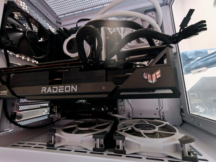 Следует оговориться, что я сравнивал ощущения не только с платформой Nvidia, но, главным образом, с предшественником – Radeon RX 7900 XT. Тоже по версии ASUS TUF Gaming, что делало сравнение еще интереснее. Моя привычка все пробовать на собственном опыте в данном случае сыграла злую шутку. При производительности хуже, чем у GeForce RTX 4070, энергии она кушала как бы не больше, чем 4090. И щедро раздавала во все стороны тепло, нагревая SSD и процессор под помпой. Единственное, к чему у меня претензий не было – так это к системе охлаждения видеокарты. В ASUS постарались сделать ее малошумной даже на максимальных оборотах. Но водянка на процессоре начинала реветь, как бешеная.