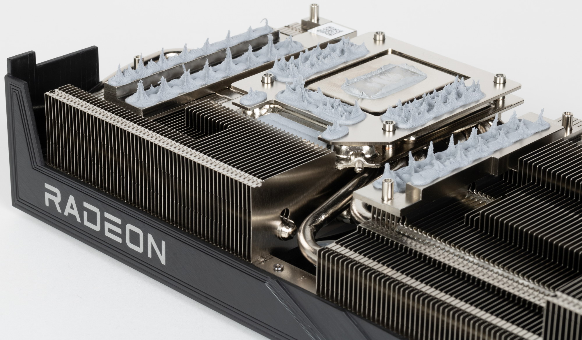 Использование монокристального чипа Navi 48, сделанного по технологии 5 нанометров, позволило упростить конструкцию ускорителя и уменьшить его габариты. Площадь самого чипа по сравнению с разными версиями Radeon RX 7900 уменьшилась почти в полтора раза. Понятно, что хорошей видеокарты должно быть много. Но все же приятно, когда она умещается в типовой корпус, а не только в здоровенные «башни».