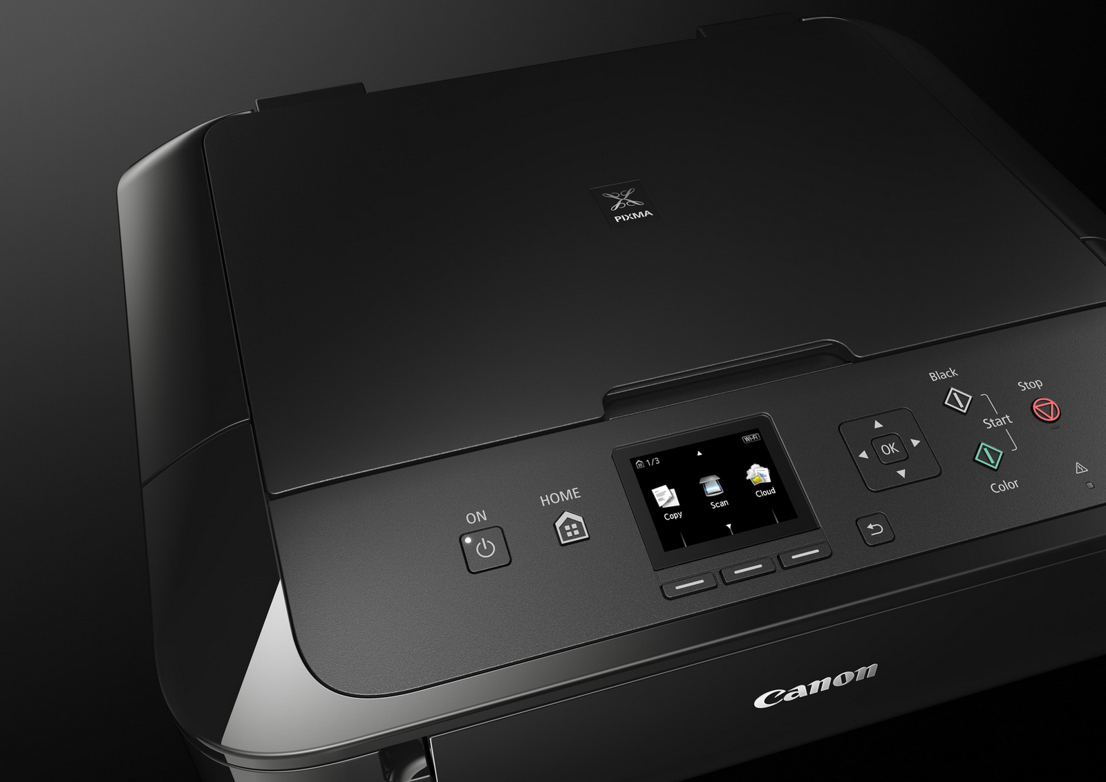 В итоге остановился на Canon Pixma MG6840. Чисто внешне они с предшественником очень похожи, и габариты точно такие же. Только пластик здесь глянцевый, а на передней панели появился кард-ридер для прямой печати фотографий. Также на лицевой панели поубавилось кнопок – они не нужны, потому что большой цветной экран стал вдобавок и сенсорным.