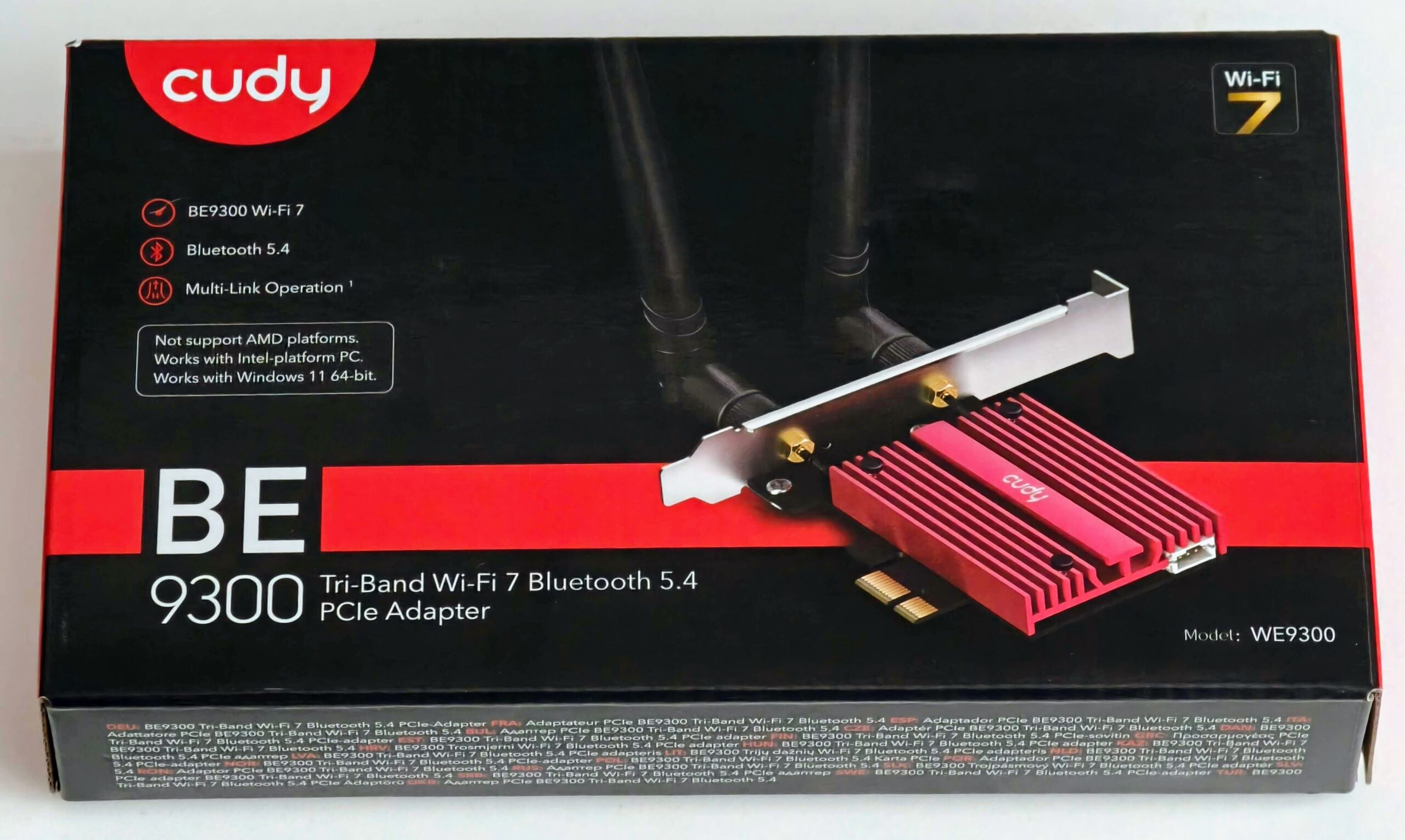 Я подготовился к встрече с прекрасным довольно основательно. Во-первых, у меня был ноутбук с адаптером на Mediatek MT7925, поддерживающем Wi-Fi 7 и 6 ГГц. Во-вторых, в моем основном смартфоне Oppo Find X8 Pro тоже заявлена поддержка и того, и другого. Наконец, в-третьих, самая тяжелая артиллерия. Для компьютера у меня был припасен адаптер Cudy WE9300 на базе модуля Intel BE200. Эта зверюга поддерживает все диапазоны, причем в 6 ГГц умеет работать с каналами шириной 320 МГц.