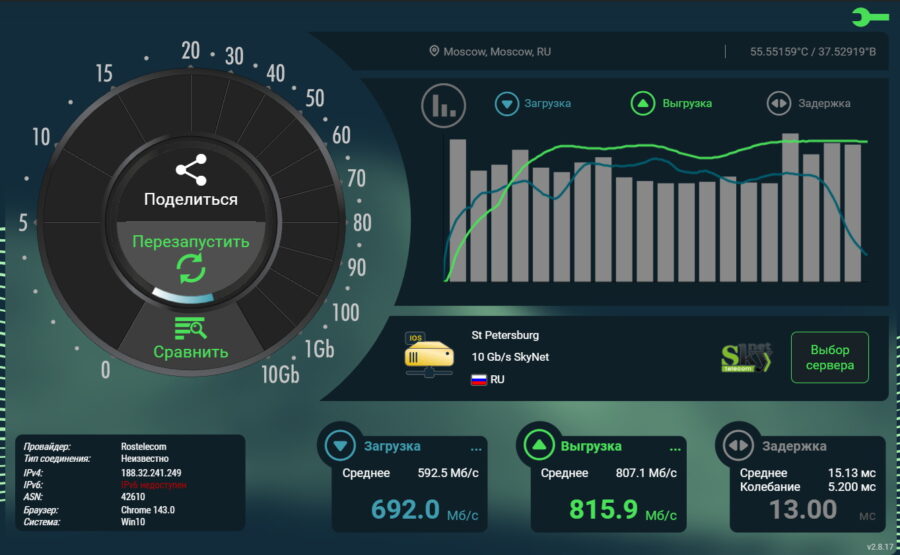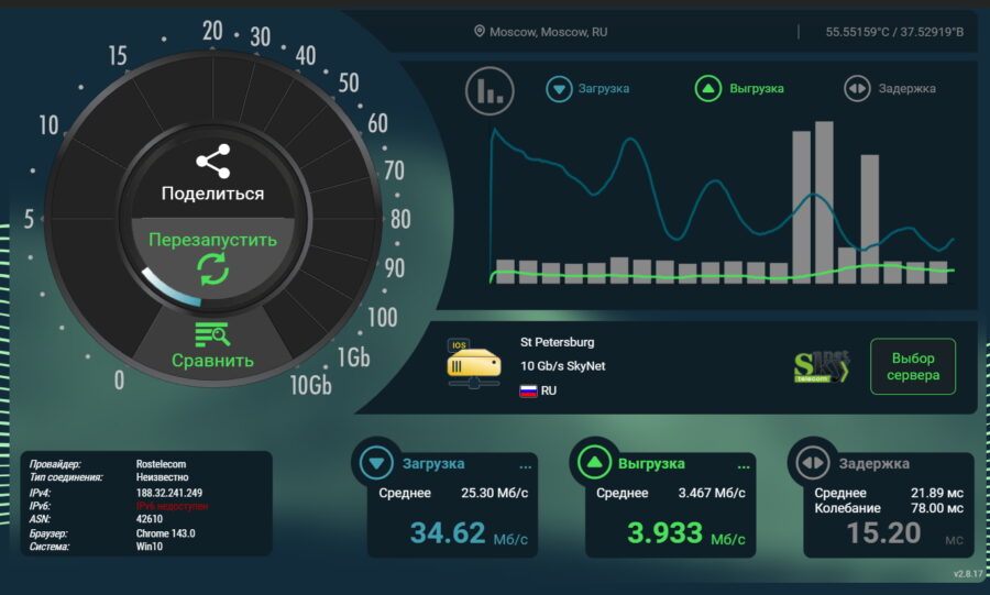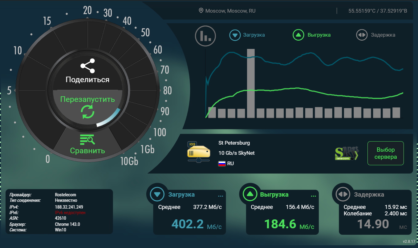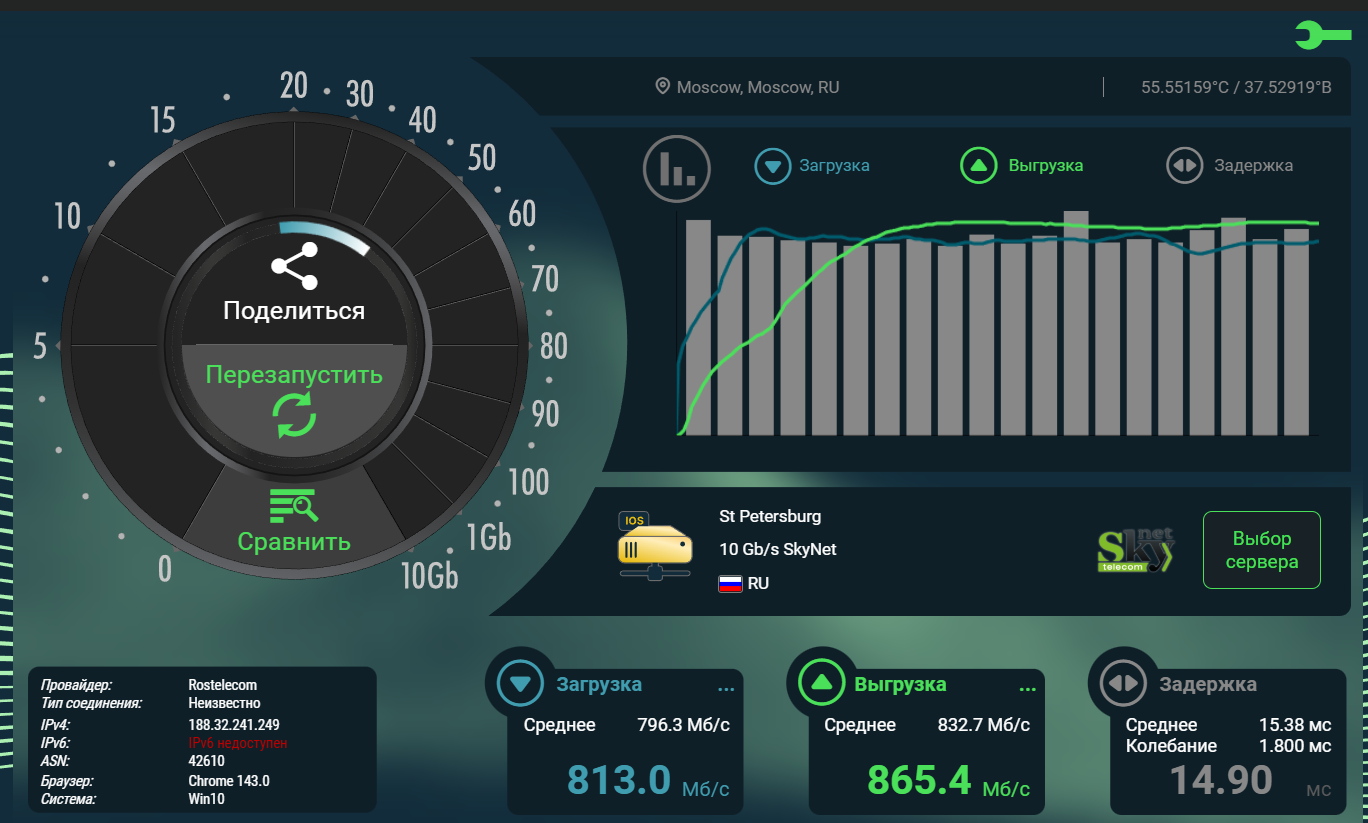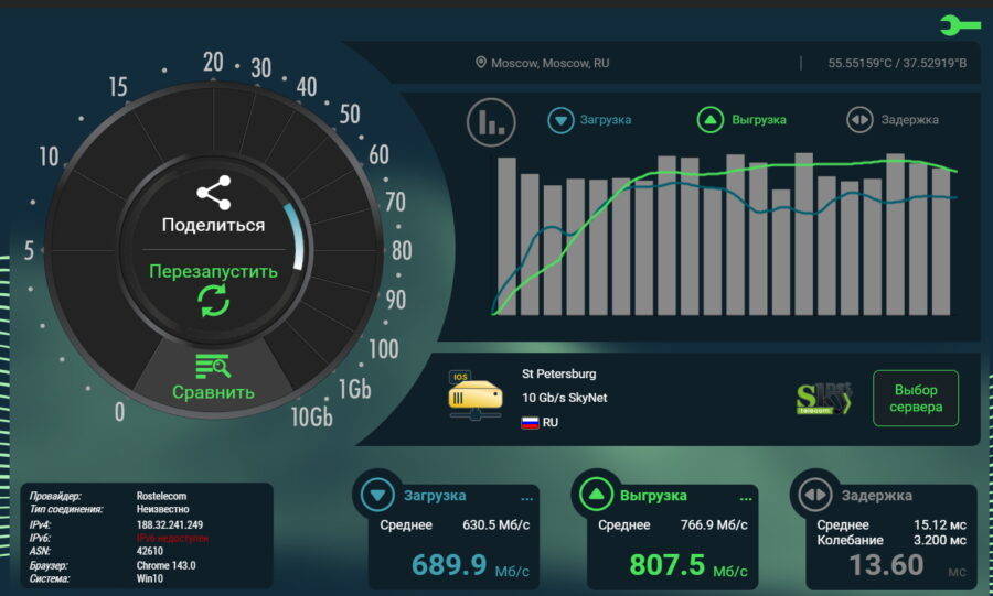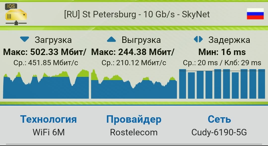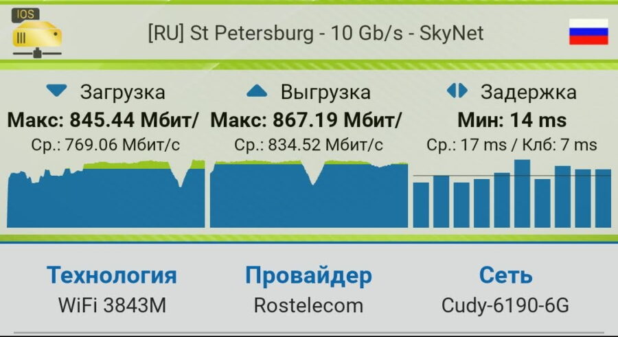 Также я не заметил никаких чудес во времени отклика: пинг в 6 ГГц такой же, как и в 5 ГГц.