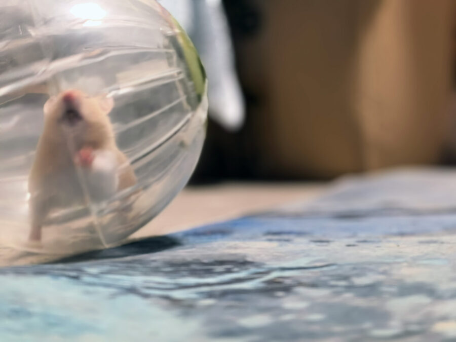 Во время одной из чисток клетки Мику посадили в шар. Обычно хомяки в них люто стрессуют. Но уже изрядно отожравшаяся Мика, несмотря на тесноту конструкции, начала обследовать в ней всю квартиру. И отказалась вылезать, когда клетка была уже готова к приему обитательницы. Поняв, что хомяк-то непростой, двуногие купили Мике новый шар – в два раза больше и полностью прозрачный. С ним сложилось полное взаимопонимание. Теперь квартирные гонки на шаре происходят каждый вечер не менее часа. А лучше – больше. Старшая собака иногда участвует в гонках, придавая шару мощное ускорение лапами. Но возраст псины дает о себе знать раньше, чем Мике надоедает кататься. Поэтому оставшиеся минут сорок ей уже никто не мешает. Скорости передвижения позавидовал бы Шумахер. Если бы мог.